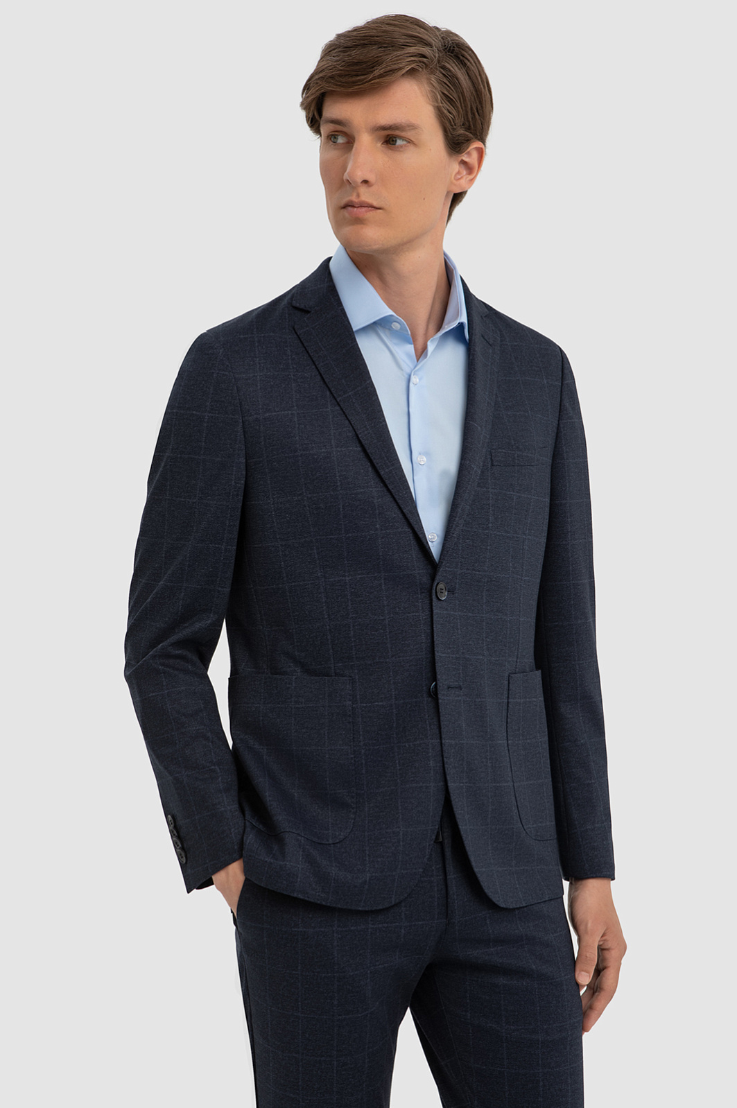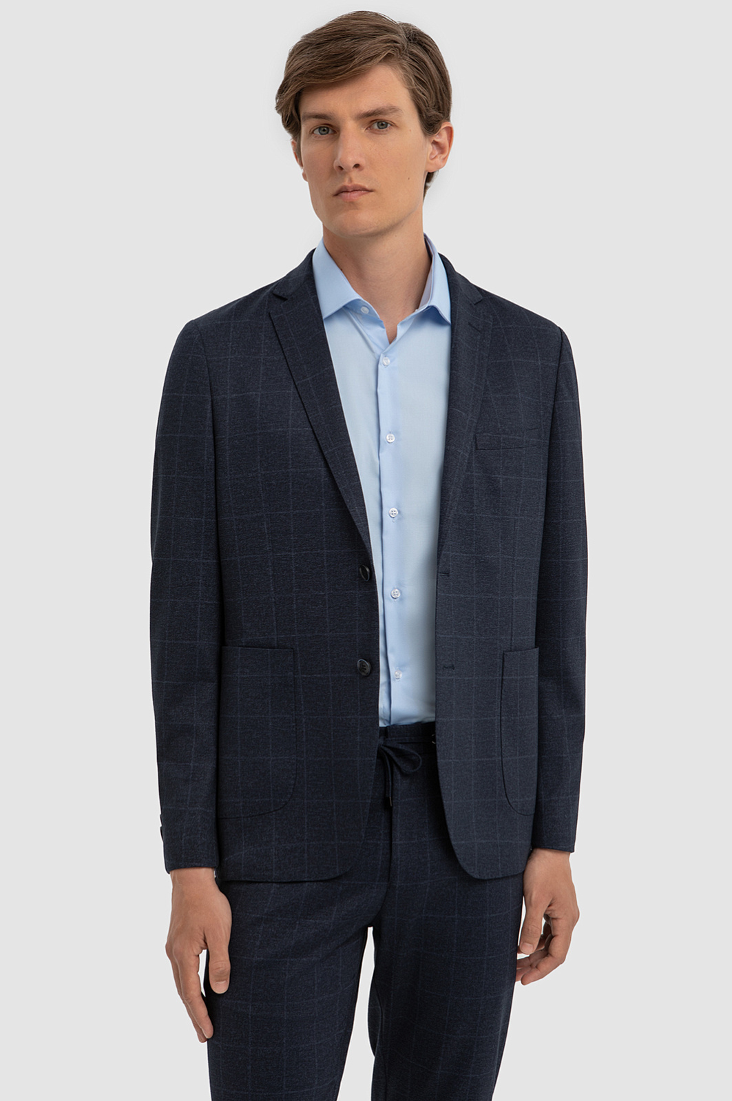 Пиджак в клетку, цвет синий, цена 12 990 руб., код 267793 - купить в Санкт-Петербурге в интернет-магазине KANZLER