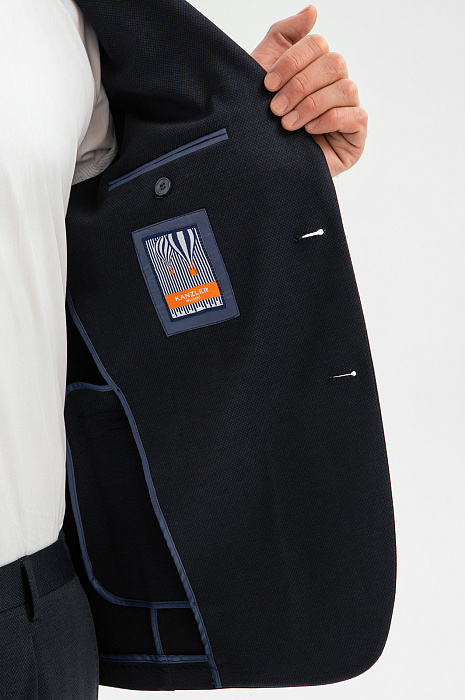 Пиджак однобортный из трикотажной ткани, цвет синий, цена 21 990 руб., код 269098 - купить в Санкт-Петербурге в интернет-магазине KANZLER