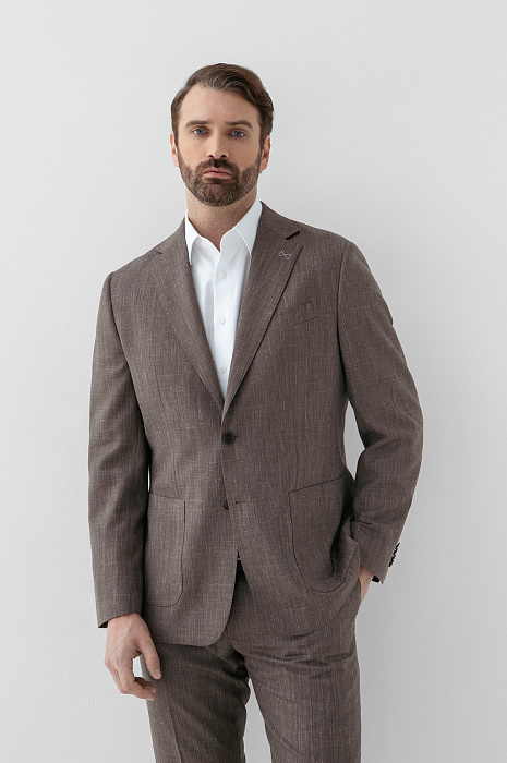 Пиджак из шерсти, льна и шелка с водоотталкивающей обработкой, цвет коричневый, цена 34 990 руб., код 271022 - купить в Санкт-Петербурге в интернет-магазине KANZLER