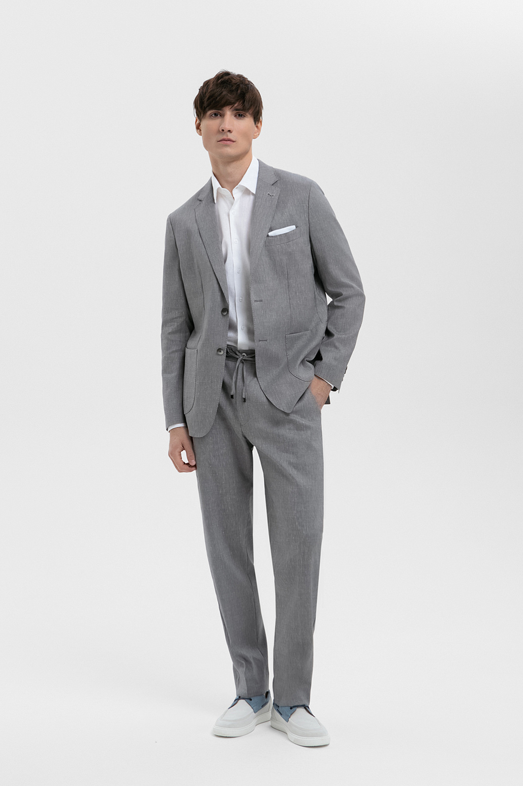 Пиджак из шерсти, льна и шелка, цвет серый, цена 34 990 руб., код 271037 - купить в Санкт-Петербурге в интернет-магазине KANZLER