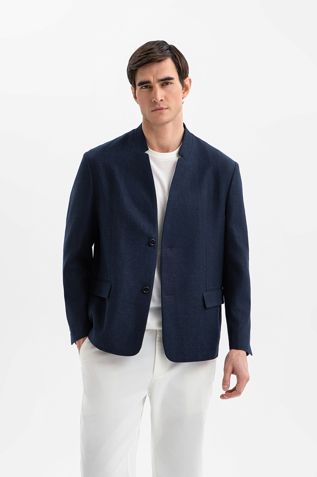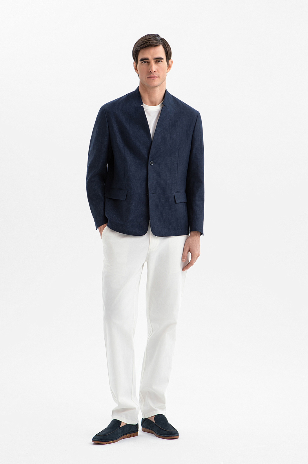 Роскошный синий пиджак KANZLER изо льна и хлопка — эволюция мужской классики, движущей силой которой стали инновационный дизайн и современные технологии пошива. Облегчённый свободный крой делает силуэт естественным. Узкие расправленные воротник и лацканы придают современное звучание и цельность. Традиционные детали — пуговицы на рукавах и клапаны на карманах — подчёркивают преемственность. Модель сшита из фактурной смесовой ткани. В составе — натуральные гипоаллергенные волокна. Прочный лён укрепляет полотно и придаёт структурность. Мягкий воздухопроницаемый хлопок поддерживает оптимальный микроклимат.
