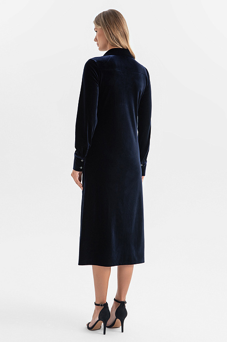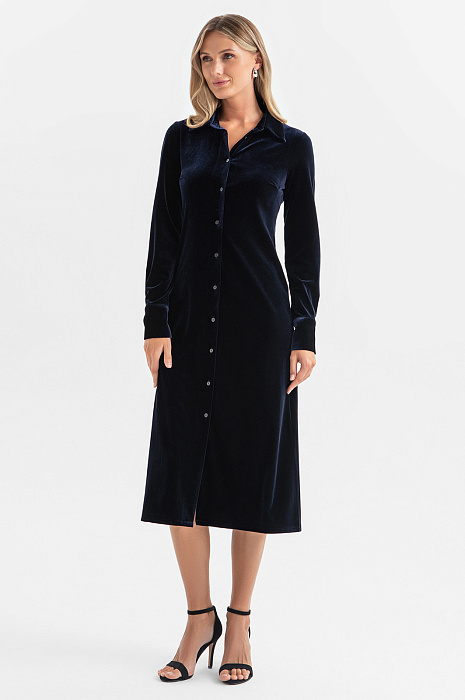 Платье-рубашка из бархата, цвет синий темный, цена 7 990 руб. - купить в интернет-магазине KANZLER
