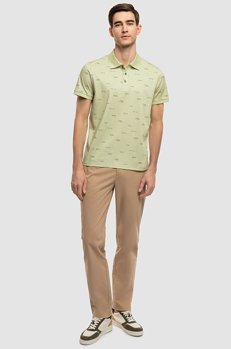 Поло KANZLER из хлопка в спокойном и изысканном оливковом оттенке. Природная гамма является неизменным трендом и выгодно подчеркивает достоинства внешности. Гипоаллергенный материал из натурального 100-процентного хлопка дарит ощущение легкости и свободы, позволяя коже дышать и сохраняя ощущение свежести даже в самый жаркий день. Узор из небольших надписей призывает нарушать правила, ощущать дух свободы и стремиться вдохновлять. Идеальным дополнением к поло станут брюки в натуральных оттенках и кожаные кеды. Параметры модели: рост 192, 101-76-97 Размер на модели: M