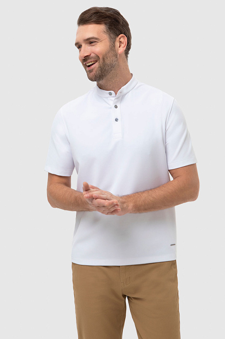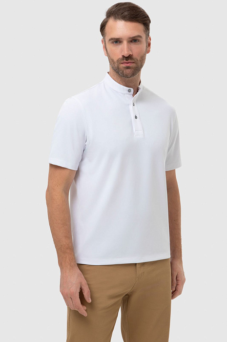 Поло из эластичной ткани, цвет белый, цена 5 990 руб., код 267369 - купить в Санкт-Петербурге в интернет-магазине KANZLER
