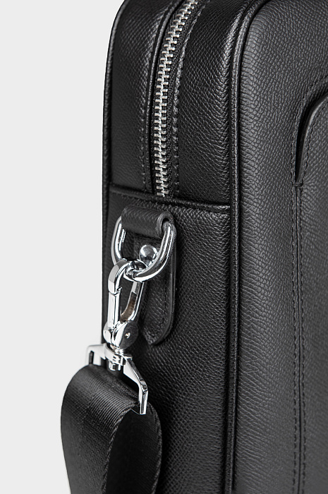 Чёрный портфель KANZLER из натуральной кожи — элегантный и функциональный аксессуар делового человека. Элегантная модель легко вмещает ноутбук, документы формата A4 и необходимые мелочи. Компактный размер делает портфель необременительным аксессуаром, который можно носить в офис ежедневно. Фактурная кожа придаёт модели выразительность и сдержанный шик, а ручки и ремешки из гладкой кожи — уникальность. Двухзамковая молния позволяет быстро достать или убрать вещи, сохранив аккуратную форму портфеля.