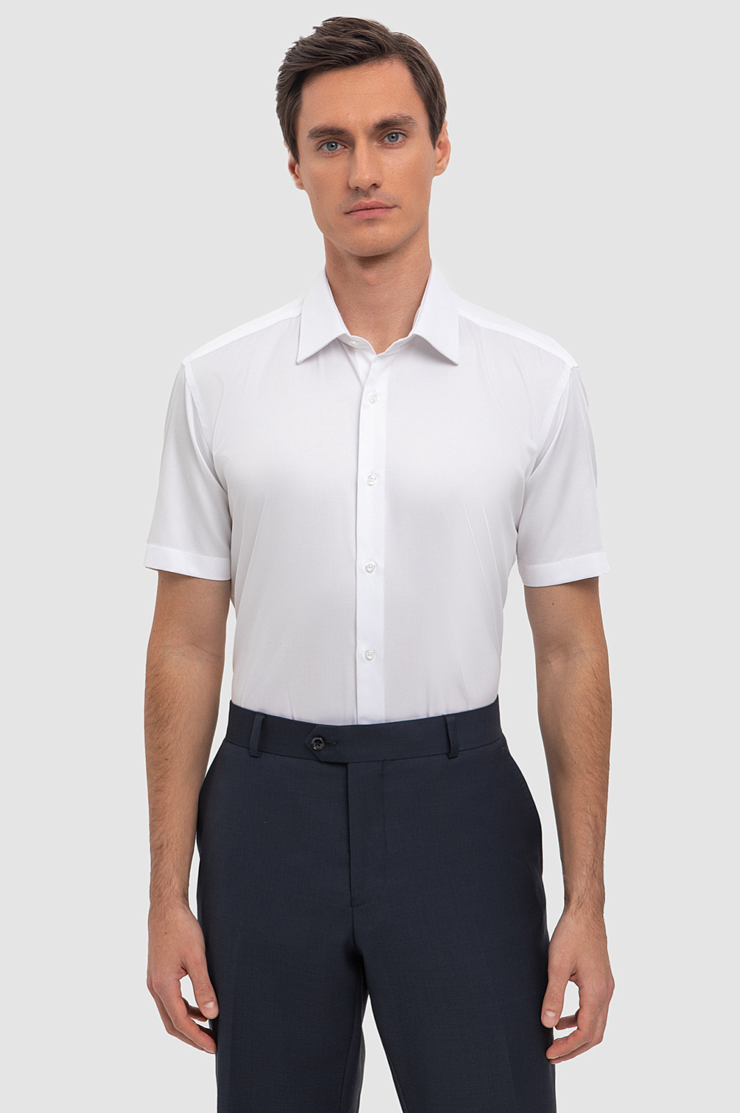 Белоснежная рубашка KANZLER с отложным воротником и короткими рукавами отлично впишется в базовый мужской гардероб для теплого времени года. В составе - высококачественный премиальный хлопок, мягкий, нежный и приятный на ощупь. Ткань прекрасно пропускает воздух и почти не мнется, сохраняя безупречный вид в течение дня, делая такую модель идеальным выбором для жаркого лета. Рекомендуем сочетать сорочку приталенного кроя с брюками или классическими брюками в синем оттенке. Параметры модели: рост 184, 98-74-92 Размер на модели: 40