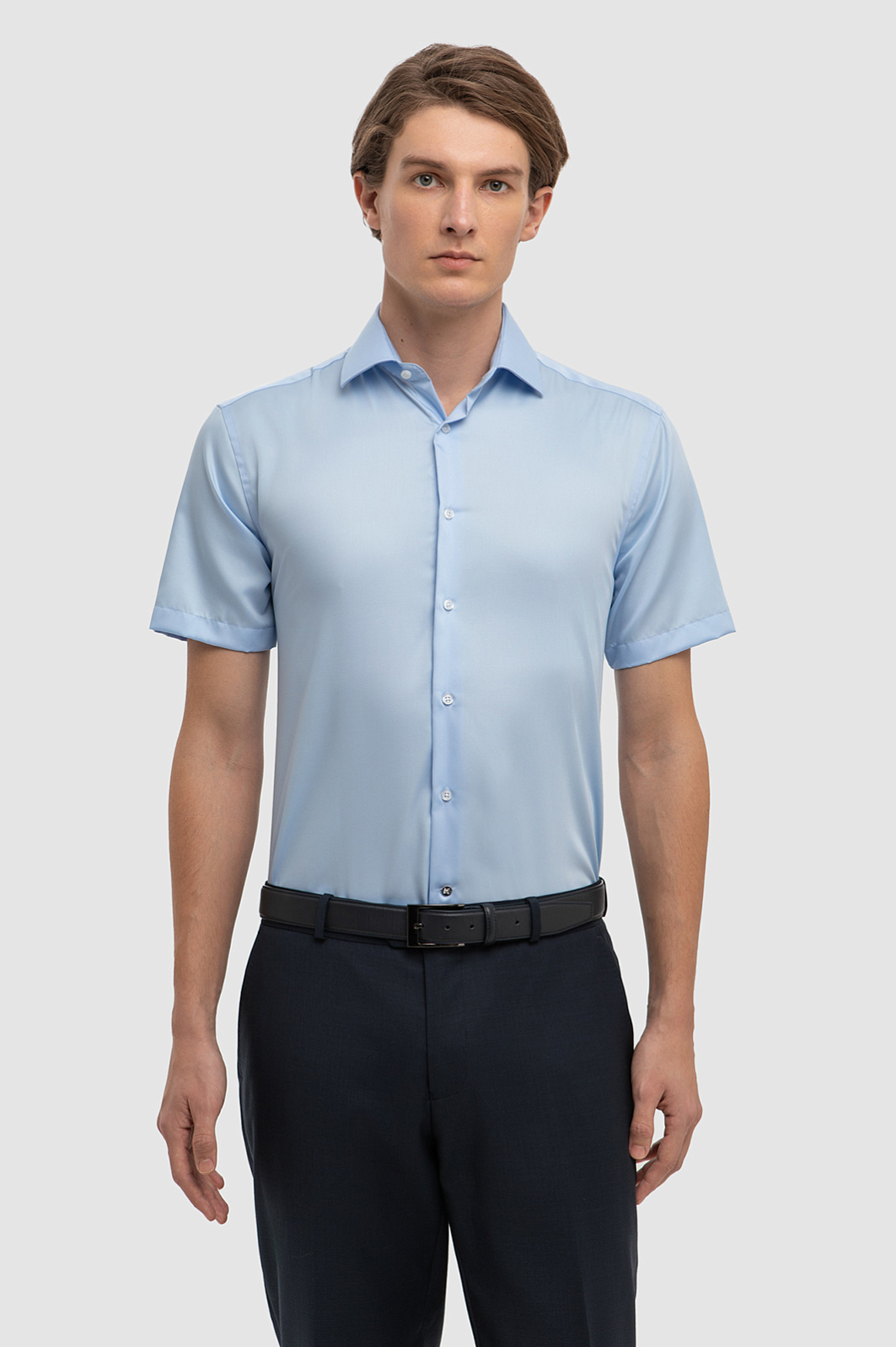 Сорочка с коротким рукавом, свободный фасон, цвет голубой, цена 4 990 руб., код 267295 - купить в Санкт-Петербурге в интернет-магазине KANZLER