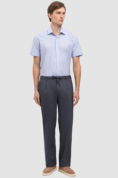 Идеальная мужская рубашка для теплого периода года является незаменимой частью делового аутфита - выглядит стильно и лаконично. Для пошива голубой рубашки с короткими рукавами и отложным воротником дизайнеры использовали мягкий натуральный хлопок, хорошо пропускающий воздух. Прочные и гладкие волокна премиального хлопка придали изделию приглушенный, благородный блеск. Прямой крой не сковывает движения, поэтому в такой модели будет комфортно даже в жаркий летний день: на прогулке, в офисе или деловой встрече - в комплекте с пиджаком. Параметры модели: рост 191, 97-77-99 Размер на модели: 40