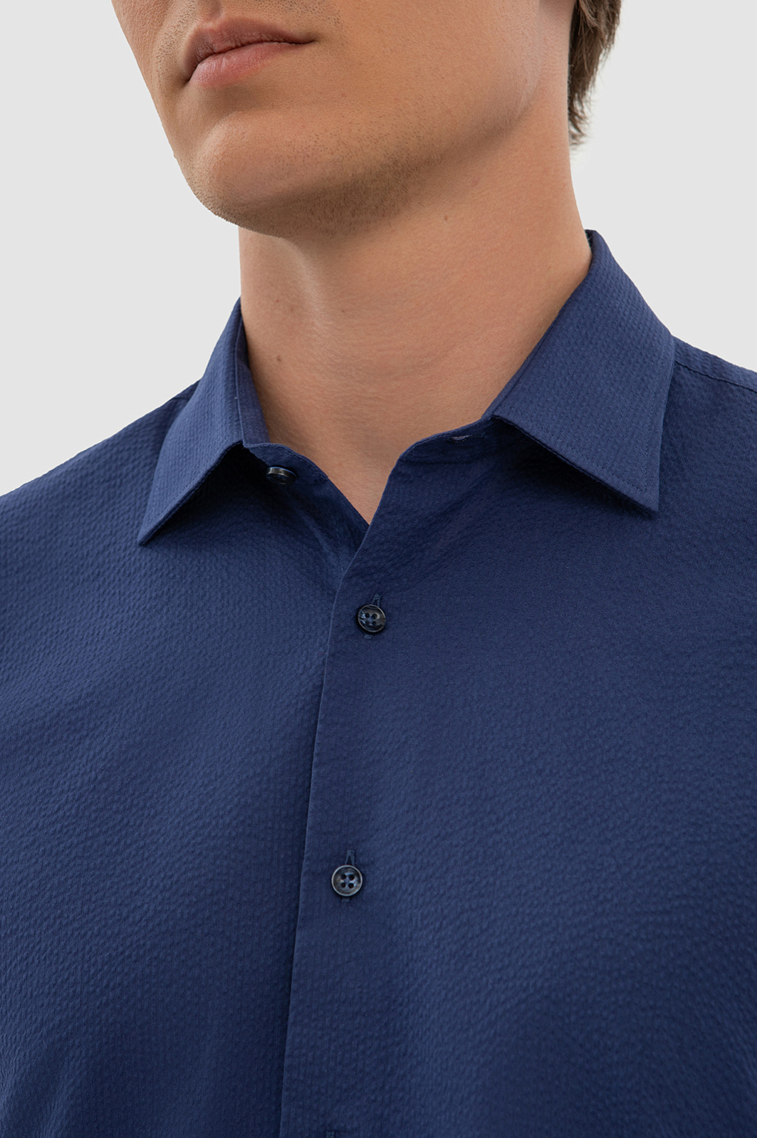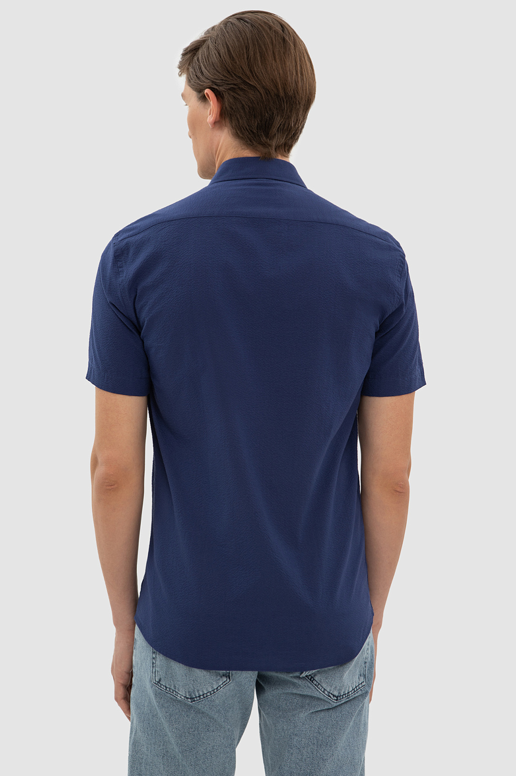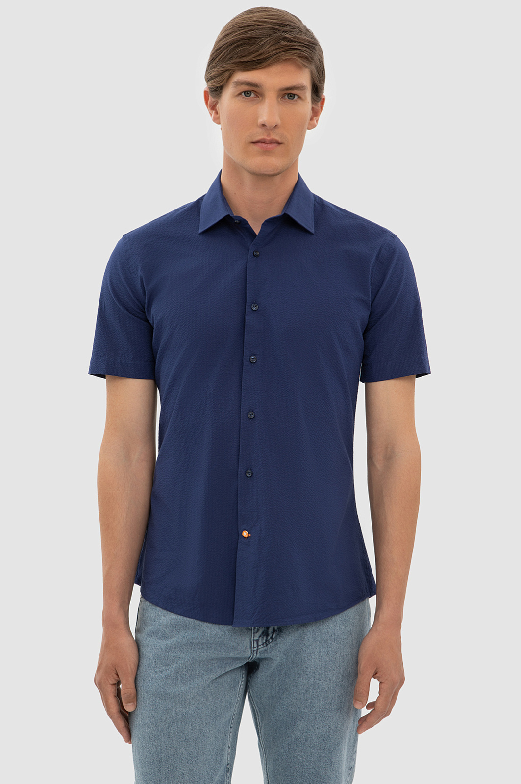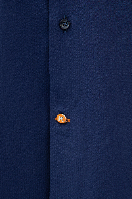 Элегантная сорочка KANZLER чернильно-синего оттенка с коротким рукавом украсит любой повседневный образ. Мягкая австрийская ткань Getzner с жатой фактурой и аккуратная акцентная деталь в виде оранжевой пуговицы на планке придают модели оригинальность, а лаконичный крой и Приталенный силуэт — долю спортивного шика. Мягкий материал из 100-процентного хлопка приятно облегает тело, сохраняя комфортную температуру. Универсальная практичная модель великолепно смотрится с джинсами и неформальными брюками и подходит для работы и отдыха в теплый сезон. Параметры модели: рост 191, 97-77-99 Размер на модели: 40
