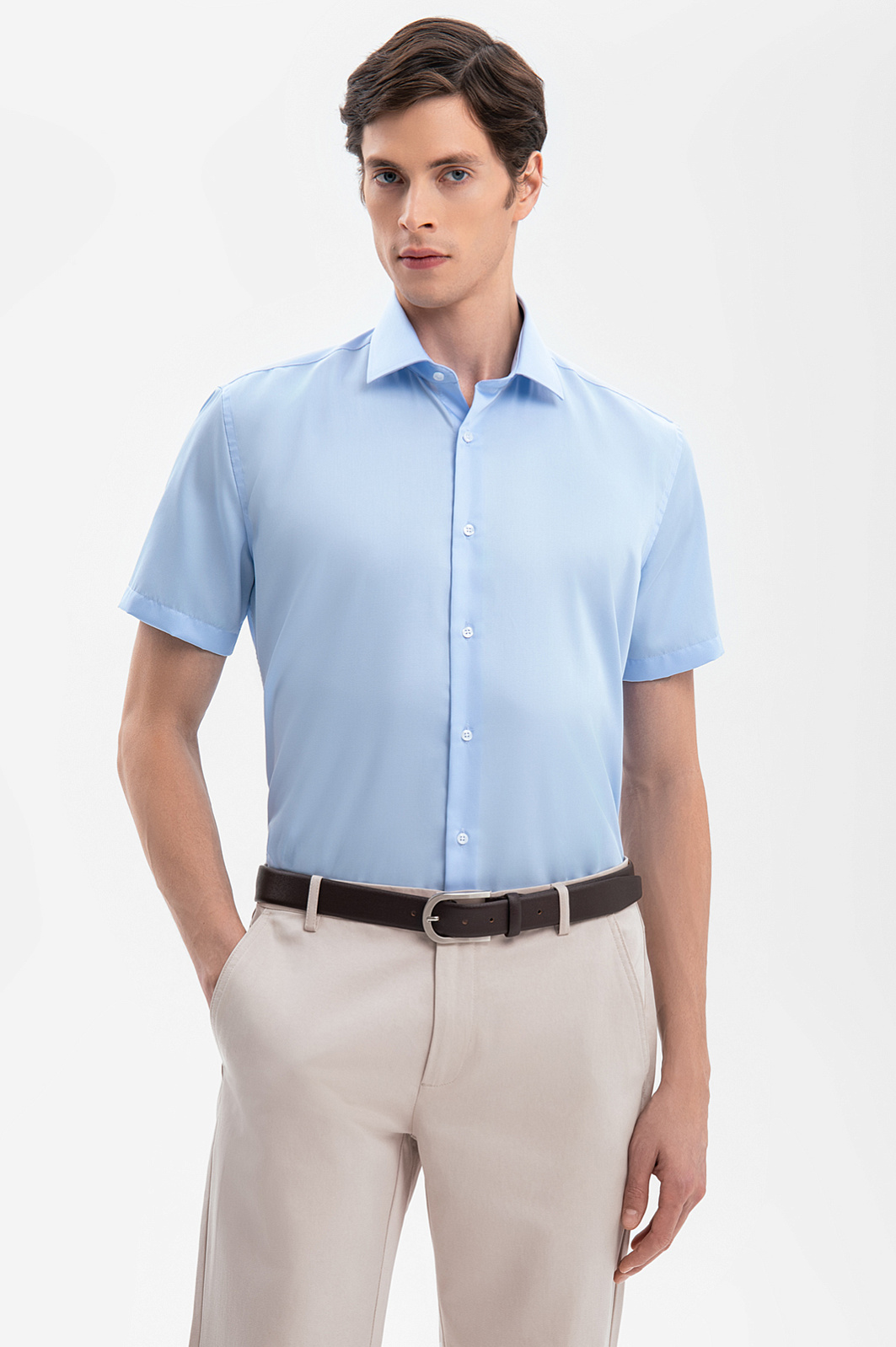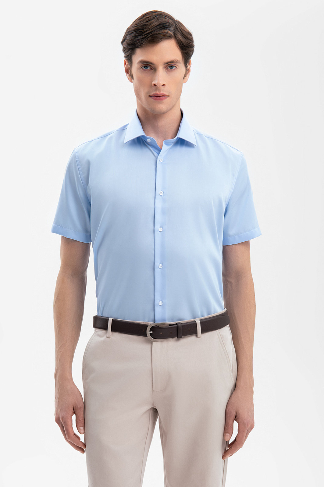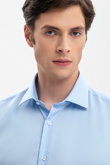 Сорочка с коротким рукавом из хлопка, устойчивая к сминанию, цвет голубой, цена 6 990 руб., код 269350 - купить в Санкт-Петербурге в интернет-магазине KANZLER