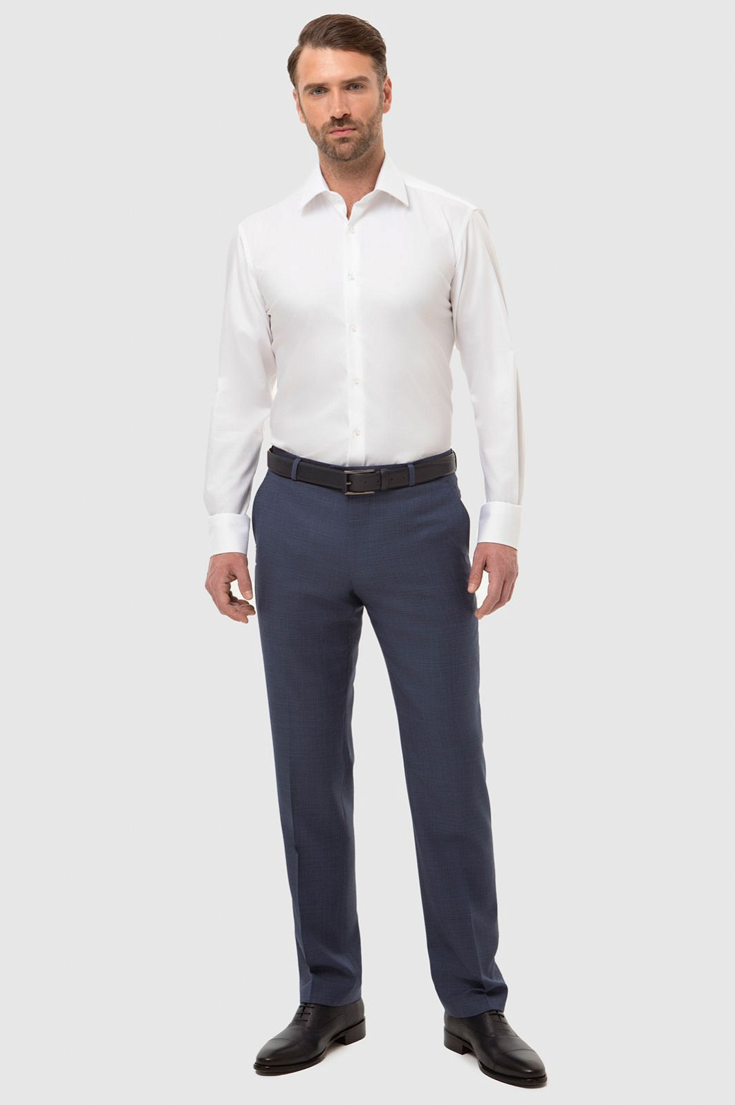 Кипенно-белая сорочка KANZLER приталенного кроя выглядит предельно лаконичной и элегантной. Она станет универсальным решением для вашего делового гардероба, предлагая идеальный баланс между стилем и комфортом. Изготовленная из тонких волокон премиального хлопка, сорочка обеспечивает отличную воздухопроницаемость и приятные тактильные ощущения, сохраняя при этом безупречный вид на протяжении всего дня. Тщательно выверенный крой гарантирует удобную посадку по фигуре, а классический рубашечный воротник, лаконичная фурнитура и манжеты на пуговицах делают сорочку подходящей для любых формальных мероприятий, офиса или важной встречи. Базовая белая рубашка легко комбинируется с костюмами, галстуками и различными аксессуарами и позволяет создавать разнообразные сочетания. Параметры модели: рост 189, 102-80-99 Размер на модели: 40