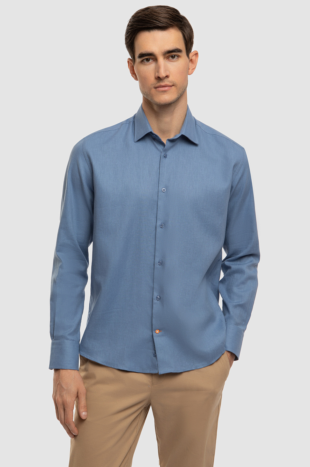 Сорочка KANZLER в матовом голубом оттенке создана из итальянской ткани Monti, качество которой проверено вековой историей бренда. Натуральный материал из хлопка и льна объединяет лучшие свойства природных волокон: хлопок обеспечивает воздухопроницаемость и гипоаллергенность, а лен отвечает за прочность и приятные тактильные ощущения. Свободный крой не сковывает движений и позволяет носить рубашку как элемент многослойного образа. Модель подойдет как для офиса с нестрогим дресс-кодом, так и для отдыха или путешествий. Параметры модели: рост 192, 101-76-97 Размер на модели: 40
