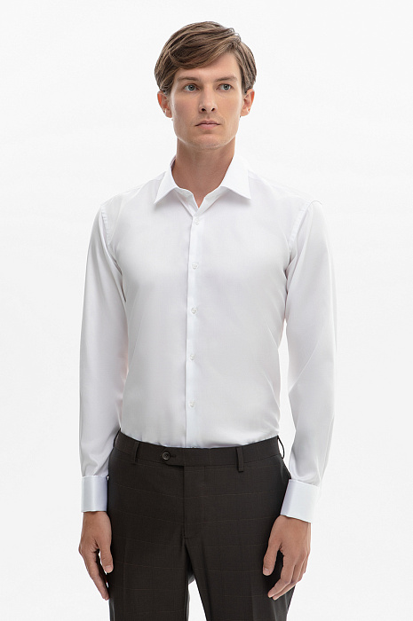 Сорочка под запонки из хлопка, легкая в уходе, цвет белый, цена 6 990 руб., код 268298 - купить в Санкт-Петербурге в интернет-магазине KANZLER