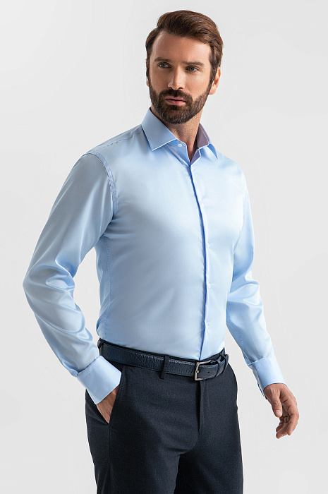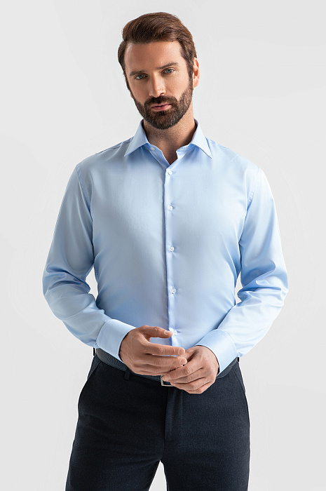 Сорочка из хлопка, легкая в уходе, цвет голубой, цена 6 990 руб., код 268299 - купить в Санкт-Петербурге в интернет-магазине KANZLER