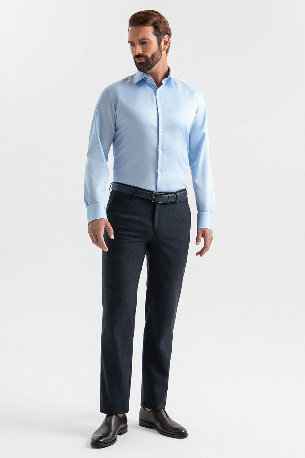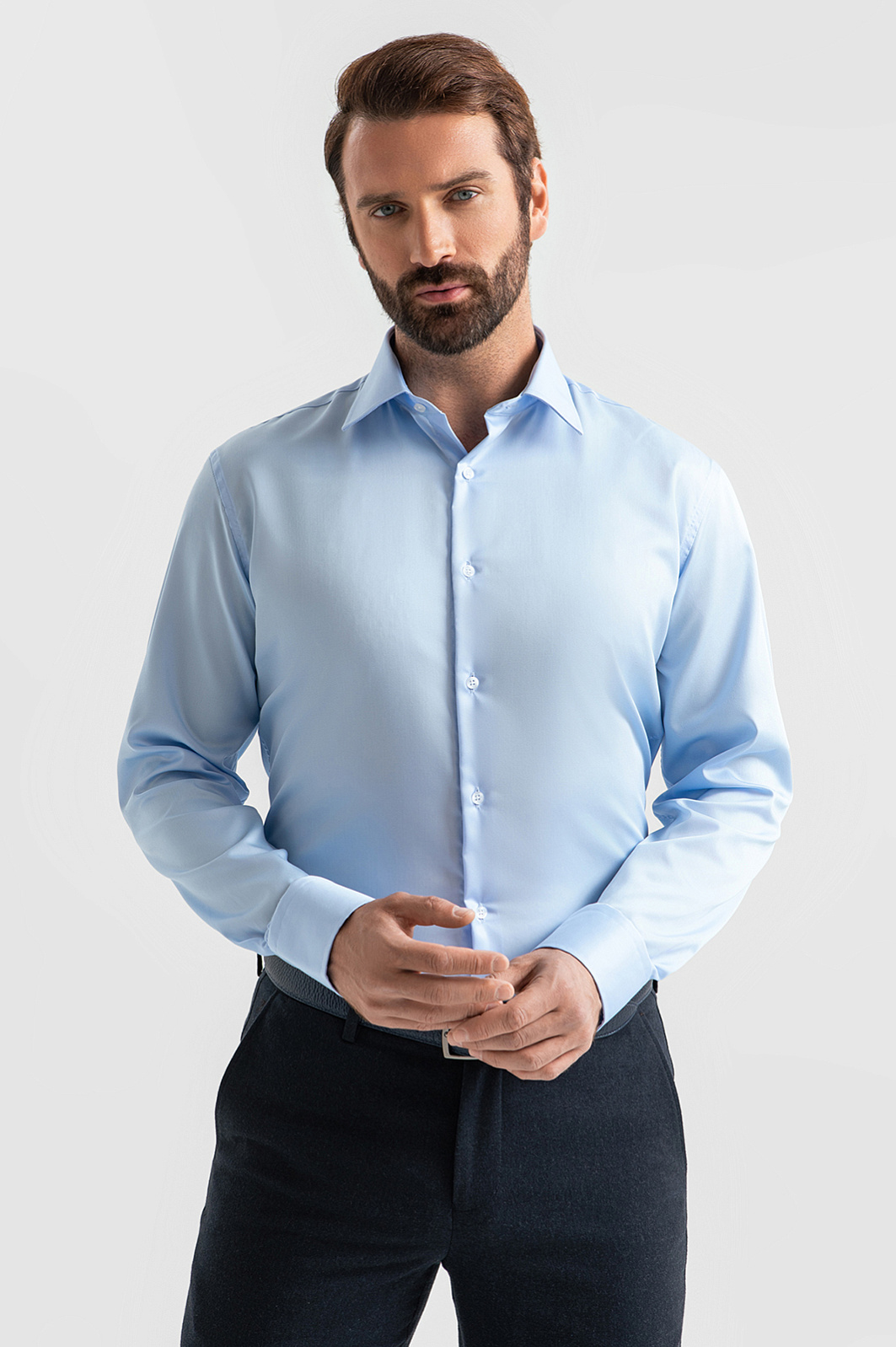 Светло-голубая сорочка KANZLER – необходимая база в деловом гардеробе. Второй по популярности после белого цвет делает модель универсальным вариантом для офисных будней и деловых встреч, создавая свежий образ. Ключевая особенность рубашки – уникальная технология, которая обеспечивает устойчивость к сминанию и легкость в уходе: после стирки достаточно повесить рубашку на плечики и дать ей высохнуть в расправленном состоянии – сорочка разгладится самостоятельно. Прилегающий подчеркивает достоинства фигуры и обеспечивает безупречную посадку, а состав из 100% хлопка с гладкой фактурой создает ощущение комфорта на протяжении всего дня. Параметры модели: рост 189, 102-80-99 Размер на модели: 40