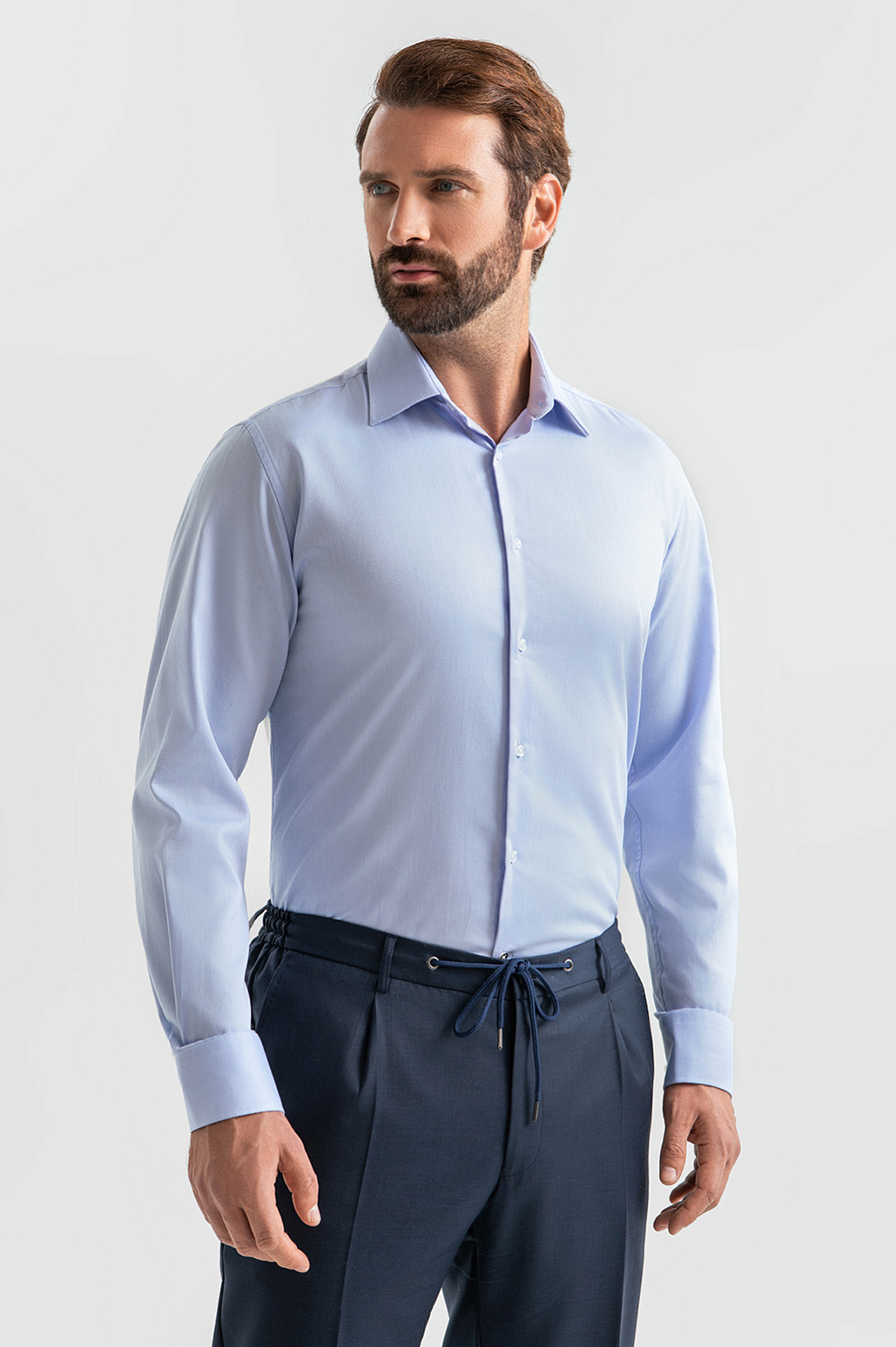 Светло-голубая сорочка KANZLER из хлопковой ткани Getzner (Австрия) создана с большим вниманием к пошиву, силуэту и ткани. Она легко впишется деловой гардероб и станет основой для создания элегантных и непринужденных образов. Линии приталенного кроя ненавязчиво подчеркивают мужественные формы. Приятная на ощупь слегка шероховатая благородная ткань из чистого хлопка окутывает кожу мягкостью и нежностью. Гипоаллергенные воздухопроницаемые волокна не раздражают самую чувствительную кожу, сохраняют естественное тепло и свежесть. Параметры модели: рост 189, 102-80-99 Размер на модели: 40