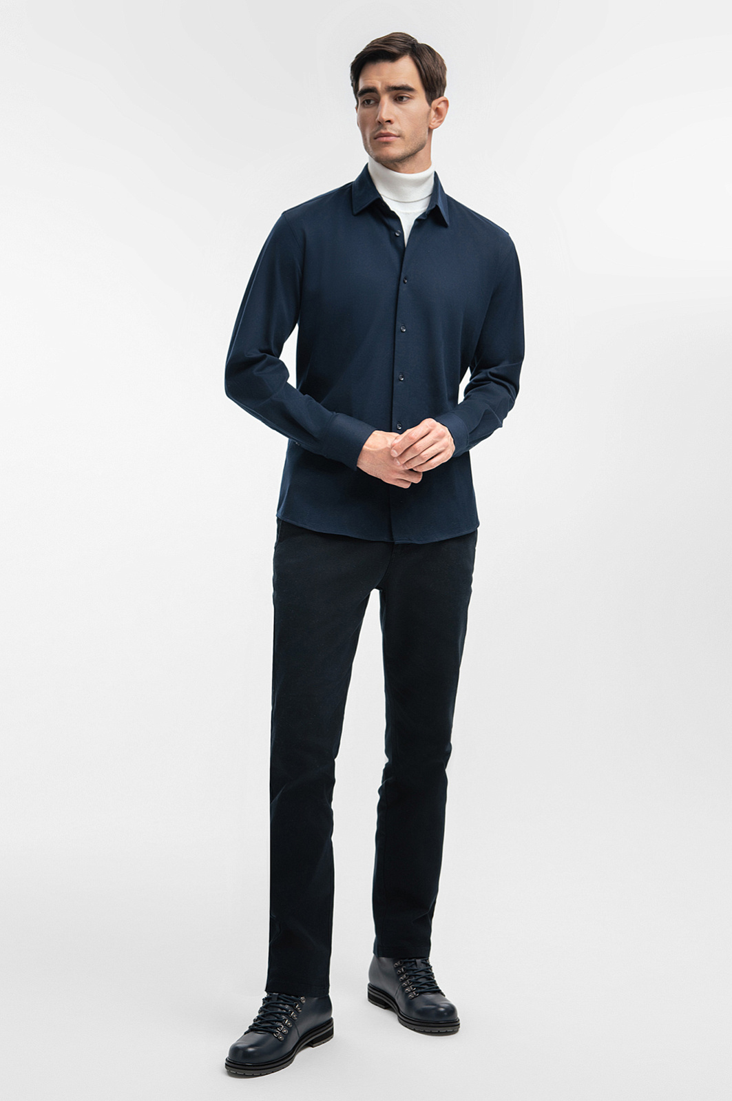 Трикотажная сорочка KANZLER синего оттенка из чистого хлопка подойдет для создания образов в городском и спортивном стилях. Прилегающий Приталенный крой подчеркивает лучшее в мужской фигуре. Гладкое трикотажное полотно мягко облегает тело. Нарушителем спокойствия выступает нижняя пуговица с фирменным инициалом, которая служит небольшим контрастным акцентом на темно-синем фоне. Дорогой натуральный материал из 100-процентного хлопка создает ощущение заботы и комфорта. Нежные натуральные волокна не раздражают чувствительную кожу, сохраняют свежесть и берегут естественное тепло тела. Параметры модели: рост 192, 101-76-97 Размер на модели: 40