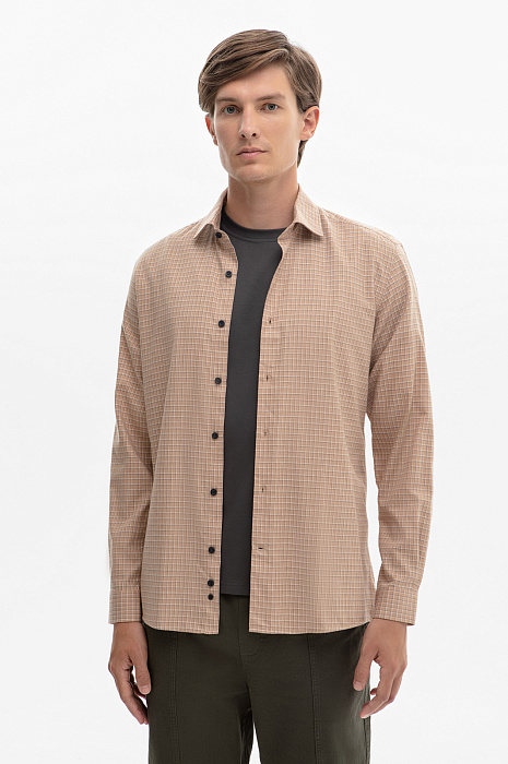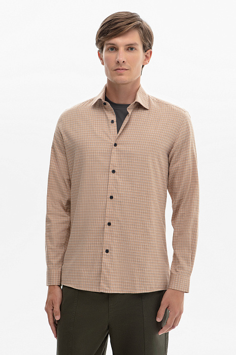 Фланелевая сорочка в клетку из устойчивой к сминанию ткани, цвет коричневый, цена 4 990 руб., код 268641 - купить в Санкт-Петербурге в интернет-магазине KANZLER