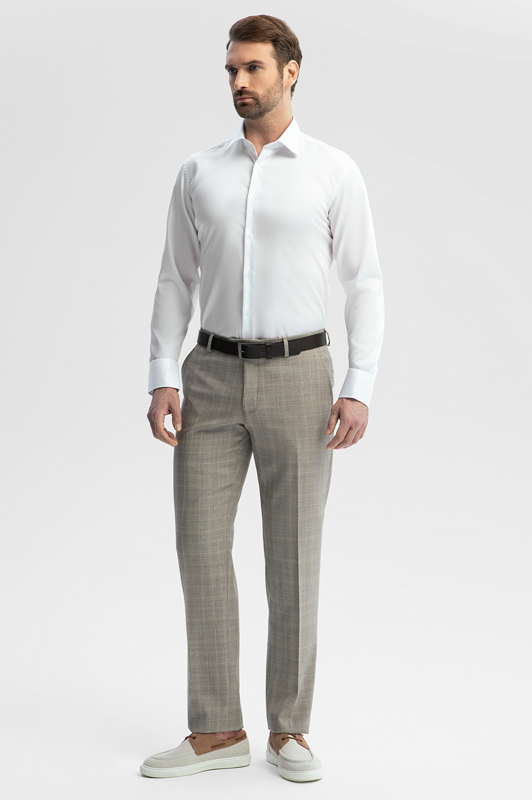 Белая приталенная сорочка KANZLER, строгая и лаконичная, без контрастных акцентов, станет универсальным решением для офисного гардероба. Модель идеально подстраивается под классические костюмы любой цветовой гаммы, дополнит образы с кардиганом и джемпером. Для пошива модели с воротником кент дизайнеры использовали мягкий, тонкий хлопок. Приталенный крой продуман так, чтобы изделие подчеркивало фигуру, не собираясь в складки под пиджаком. Главная особенность и важное достоинство модели - уникальная технология обработки ткани – такая рубашки практически не мнется в течение дня, их легко гладить после стирки и повесить на плечики высыхать. Рубашка с этой технологией особенно любима мужчинами, которые работают в офисе и бизнес-среде. Модель из 100% натурального длинноволокнистого хлопка подарит комфорт и подчеркнет строгий стиль. Параметры модели: рост 189, 102-80-99 Размер на модели: 40
