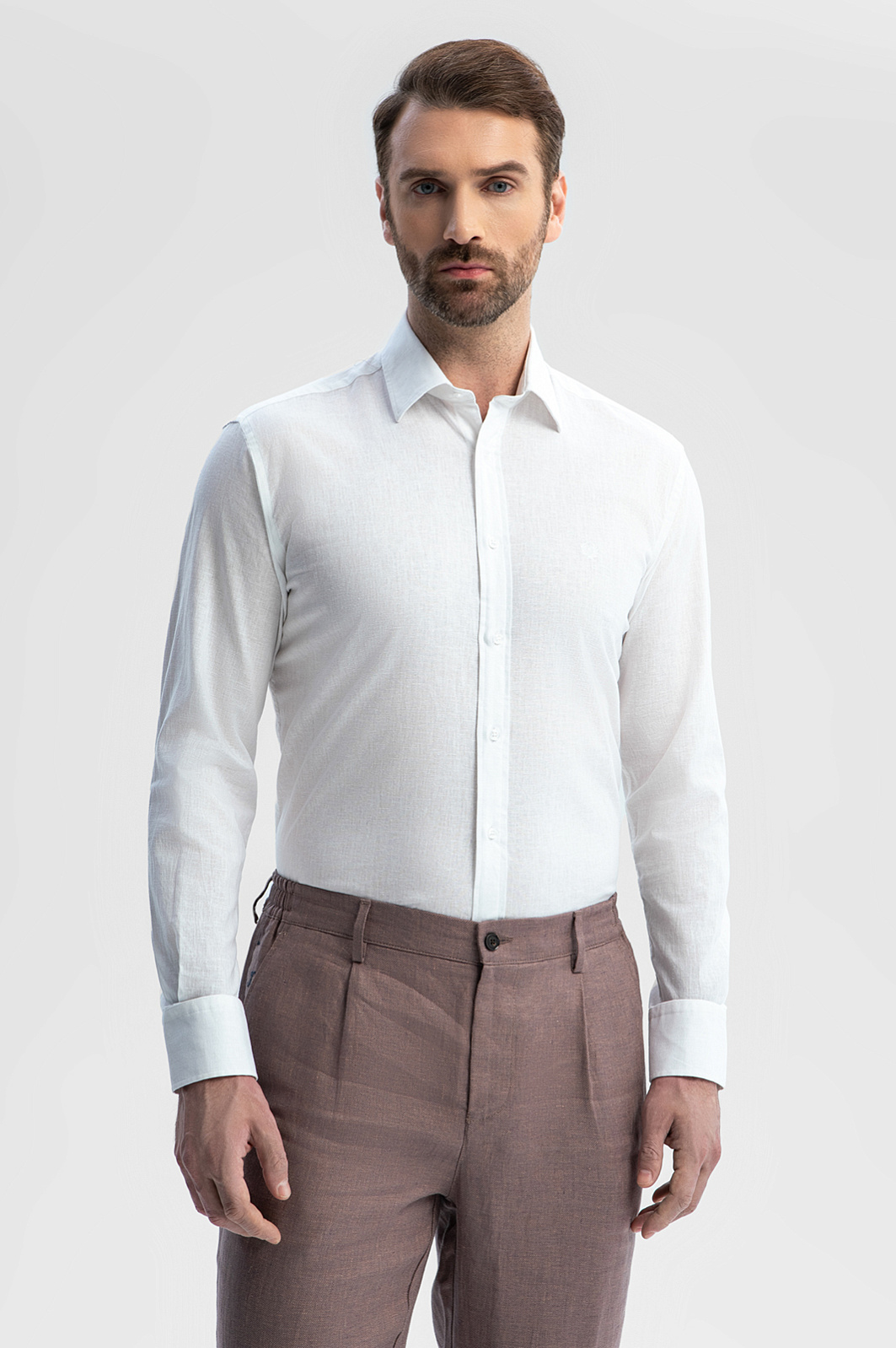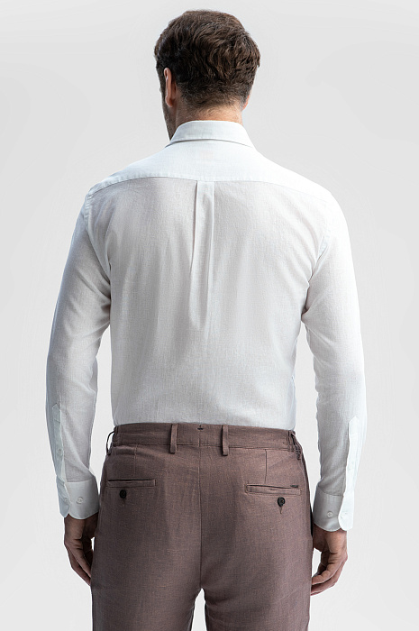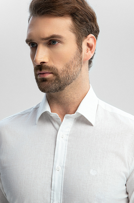 Белая сорочка KANZLER из австрийской ткани Getzner отлично впишется в летний офисный гардероб и будет эффектно смотреться на отдыхе. На сборы потребуется всего пара минут — сорочка сочетается с любыми джинсами и неофициальными брюками. Свободный крой дает возможность чувствовать себя легко и непринужденно в любой ситуации. Лен плюс хлопок — самый комфортный микс для теплых дней. Гигроскопичный износоустойчивый лен создает в жару ощущение прохлады. Воздухопроницаемый дышащий хлопок придает ткани легкость. Параметры модели: рост 189, 102-80-99 Размер на модели: 40