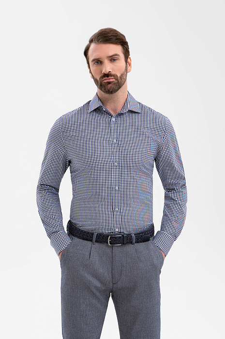 Синяя сорочка KANZLER прямого кроя из чистого хлопка — универсальная модель для мужчин, которые выбирают уверенный стиль и комфорт. Со строгими брюками и пиджаком она уместна в офисном контексте, а с джинсами или неформальными брюками — в местах отдыха. Клетка добавляет образу визуальный ритм, оставаясь сдержанной и уместной в рамках современной классики. Прямой крой не ограничивает свободу движений и подходит для любой комплекции. Материал из 100% хлопка мягко ложится по фигуре, приятен к телу и хорошо держит форму, оставаясь опрятным даже при активном ритме жизни. Гипоаллергенные натуральные волокна обеспечивают свежесть и комфорт в течение всего дня.