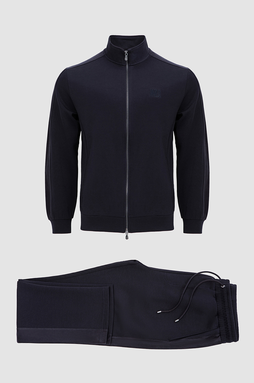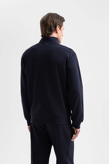 Тёмно-синий костюм KANZLER принадлежит и миру спорта, и уличному стилю. Миссия выполнима: в нём можно тренироваться, гулять и предаваться ничегонеделанию дома. Комплект состоит из толстовки на молнии и свободных брюк на кулиске. Мягкий трикотаж сочетается с вставками из полиэстера, которые подчёркивают современный характер костюма и делают его структуру выразительной. В составе трикотажа — натуральный гипоаллергенный хлопок, который поддерживает ощущение свежести и сохраняет естественное тепло тела. Добавление полиэстера и эластана придаёт материалу прочность и пластичность.