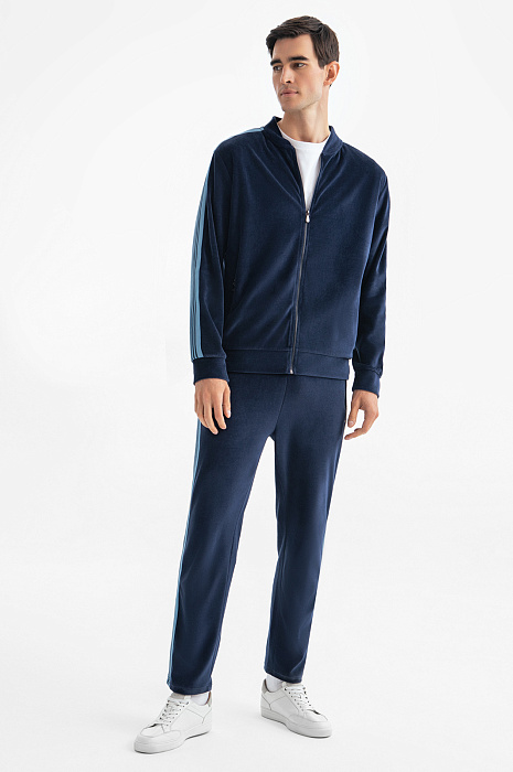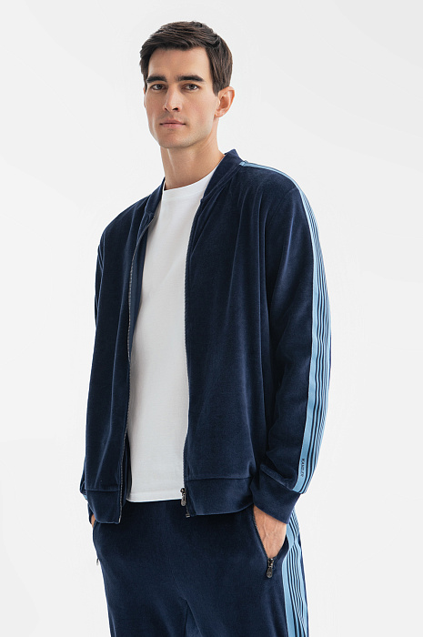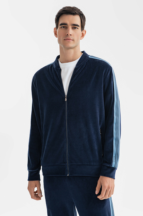 Толстовка из хлопка с лампасами, цвет синий, цена 6 990 руб., код 268677 - купить в Санкт-Петербурге в интернет-магазине KANZLER
