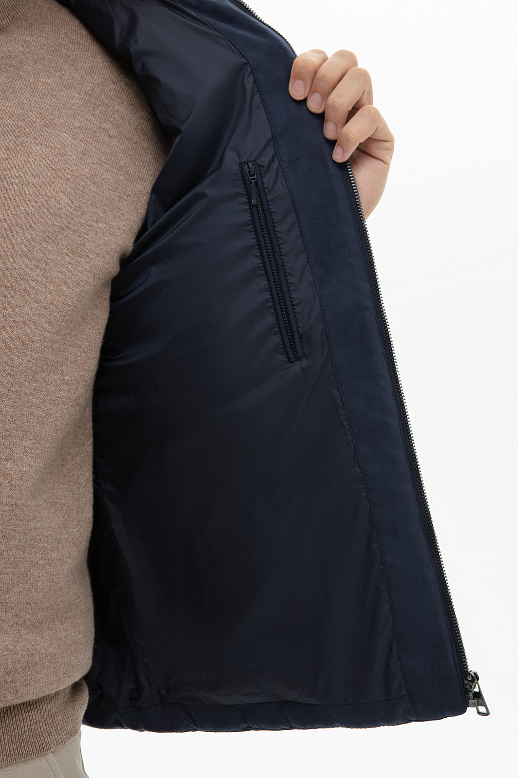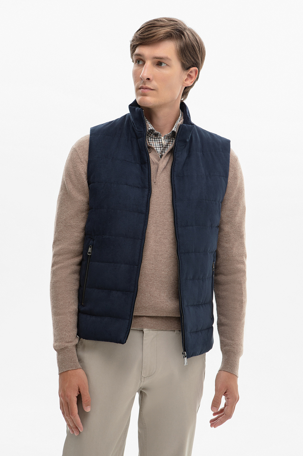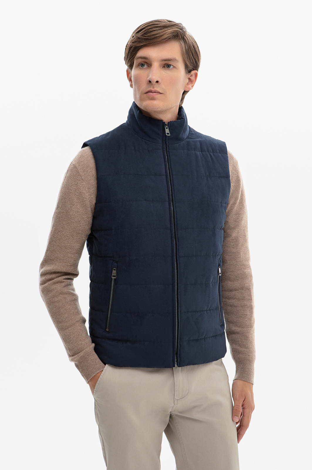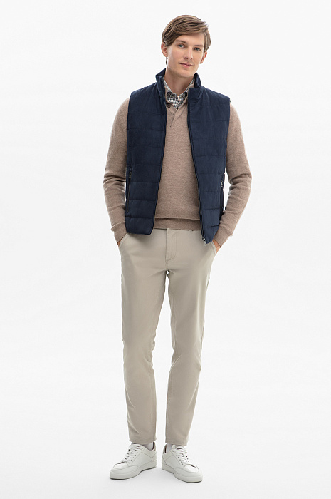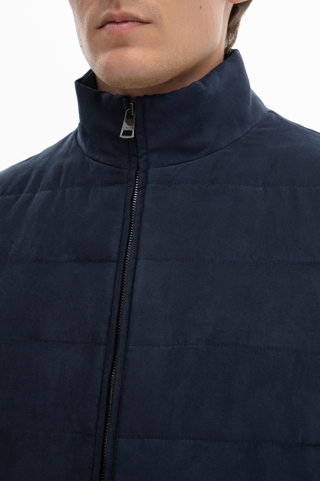 Жилет из алькантары утепленный стеганый демисезонный, цвет синий, цена 12 990 руб., код 268571 - купить в Санкт-Петербурге в интернет-магазине KANZLER