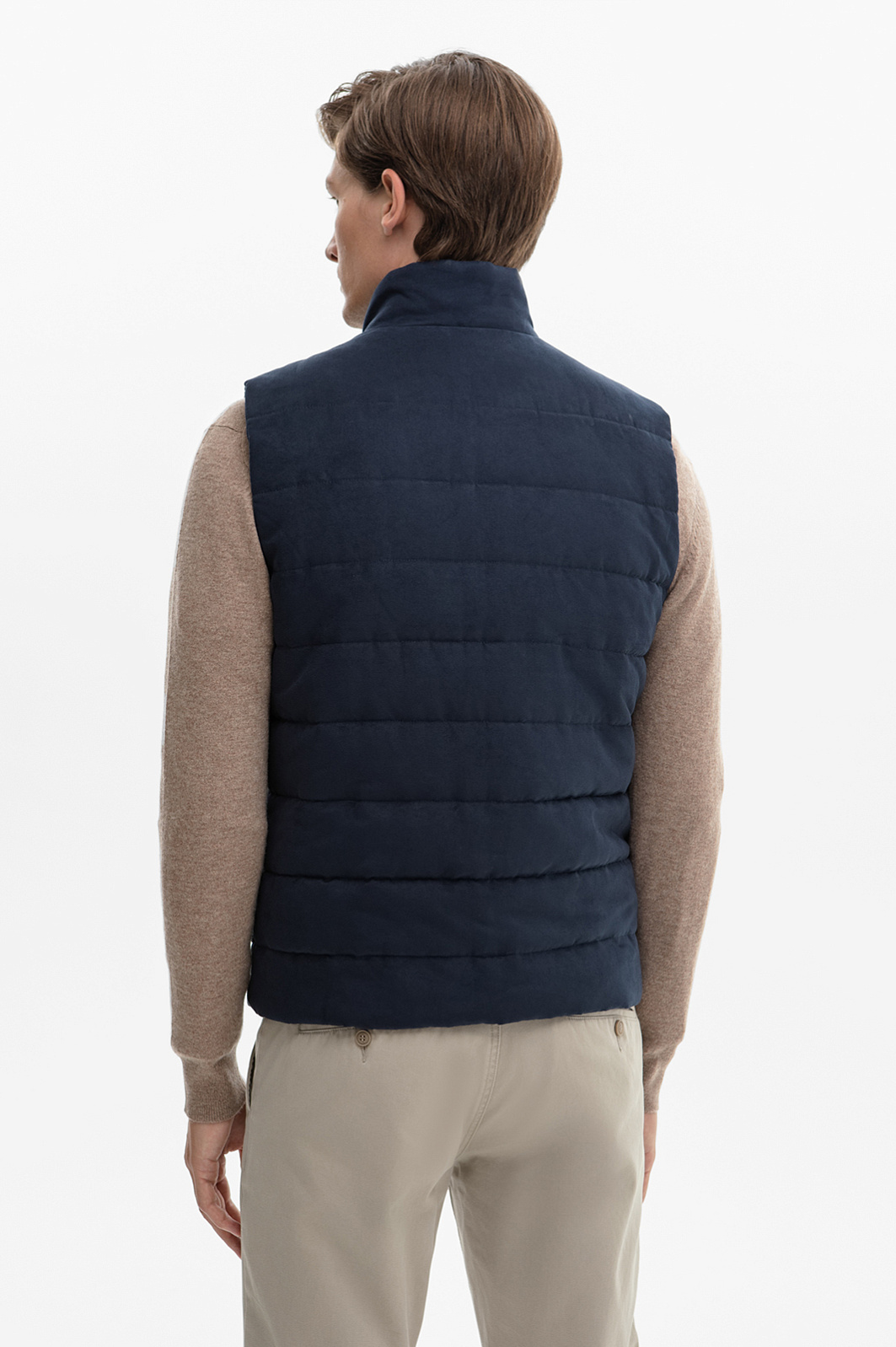 Стеганый жилет в синем оттенке — основа для многослойных демисезонных образов. Модель получилась лаконичной и универсальной. Для пошива изделия с двумя карманами дизайнеры использовали прочный, приятный на ощупь материал с бархатистой поверхностью. Изделие хорошо удерживает тепло, защищает от холодного ветра и обеспечивает полный комфорт в процессе носки. Горизонтальная стежка не только добавляет изысканный визуальный акцент, но и обеспечивает равномерное распределение тепла, а высокий воротник защищает шею от ветра. Молния на всю длину придаёт жилету динамичный вид, а брендированные наконечники завершают продуманный образ. Насыщенный темно-синий оттенок жилета идеально сочетается как с повседневными ансамблями с джемпером и брюками, так и с более спортивными или классическими образами с брюками и рубашкой. Параметры модели: рост 191, 97-77-99 Размер на модели: 50